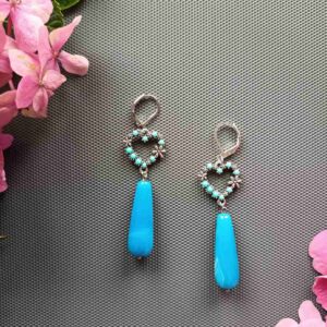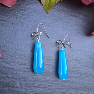 Handmade Teardrop Blue Agate Earrings with Silver Bow Accent, Statement Earrings, Drop Earrings