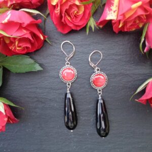 Black Rose Teardrop Earrings, Black Obsidian Drop Earrings, Statement Earrings, Gift for Her