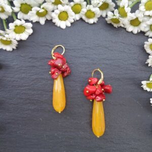 Handmade Red Agate with Teardrop Turquoise Earrings: Gold Boho Dangle Earrings