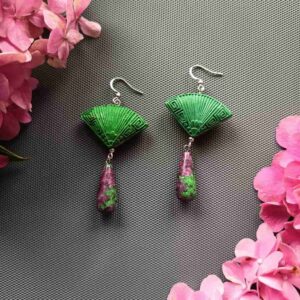 Handmade Carved Cinnabar Zoisite Drop Earrings, Statement Jewelry