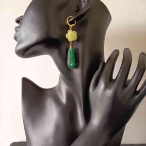 Green Crystal Teardrop, Rose Flower Drop Earrings, Elegant Floral Jewellery