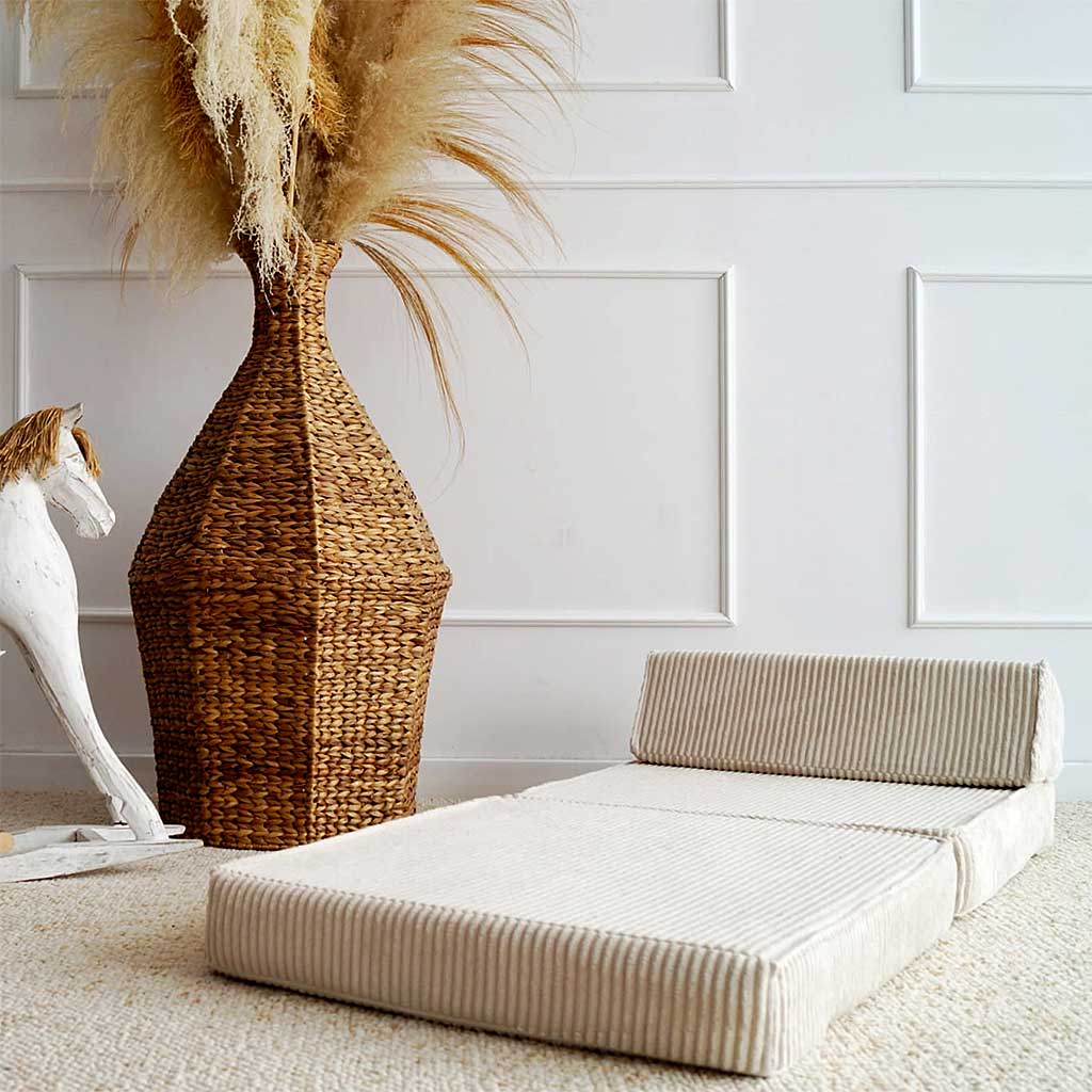 Stylish, practical and cosy, this fold-out children’s armchair in soft ribbed corduroy offers a smart 3-in-1 solution for modern families. Whether it’s used as a comfy chair, a daybed for naps, or a soft play space, this cleverly designed piece of furniture adapts effortlessly to your child’s needs throughout the day.