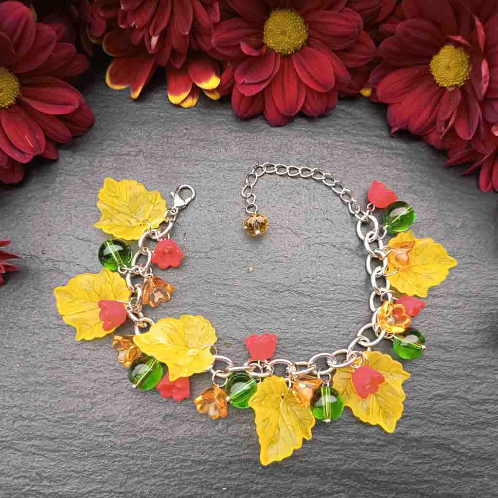 Handmade autumn leaf charm bracelet
