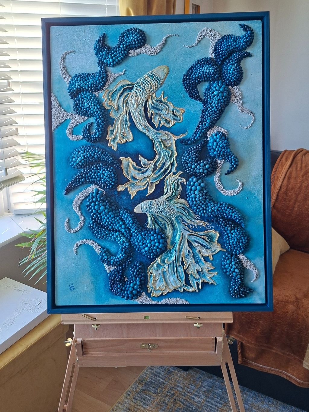 In the Current – Original Sculptural Mixed Media Wall Art (49 x 63 cm, Framed)