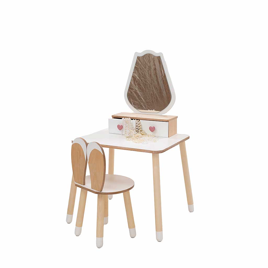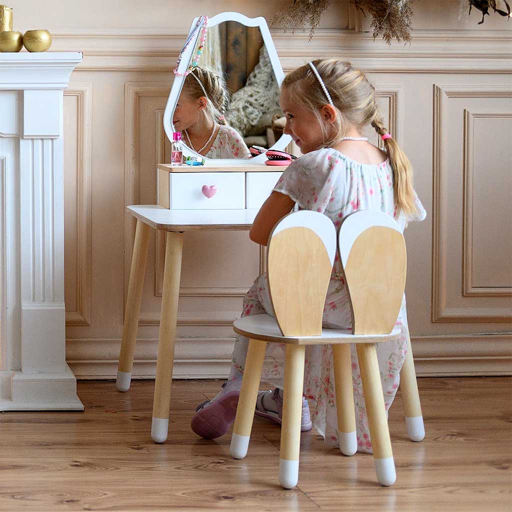 Kids Dressing Table with Mirror & Chair – Tulip Mirror – White
