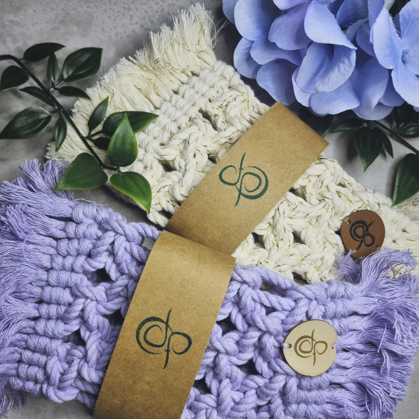 Our coasters are 100% handmade using 3-ply macramé cotton cords, finished with a fluffy fringe!