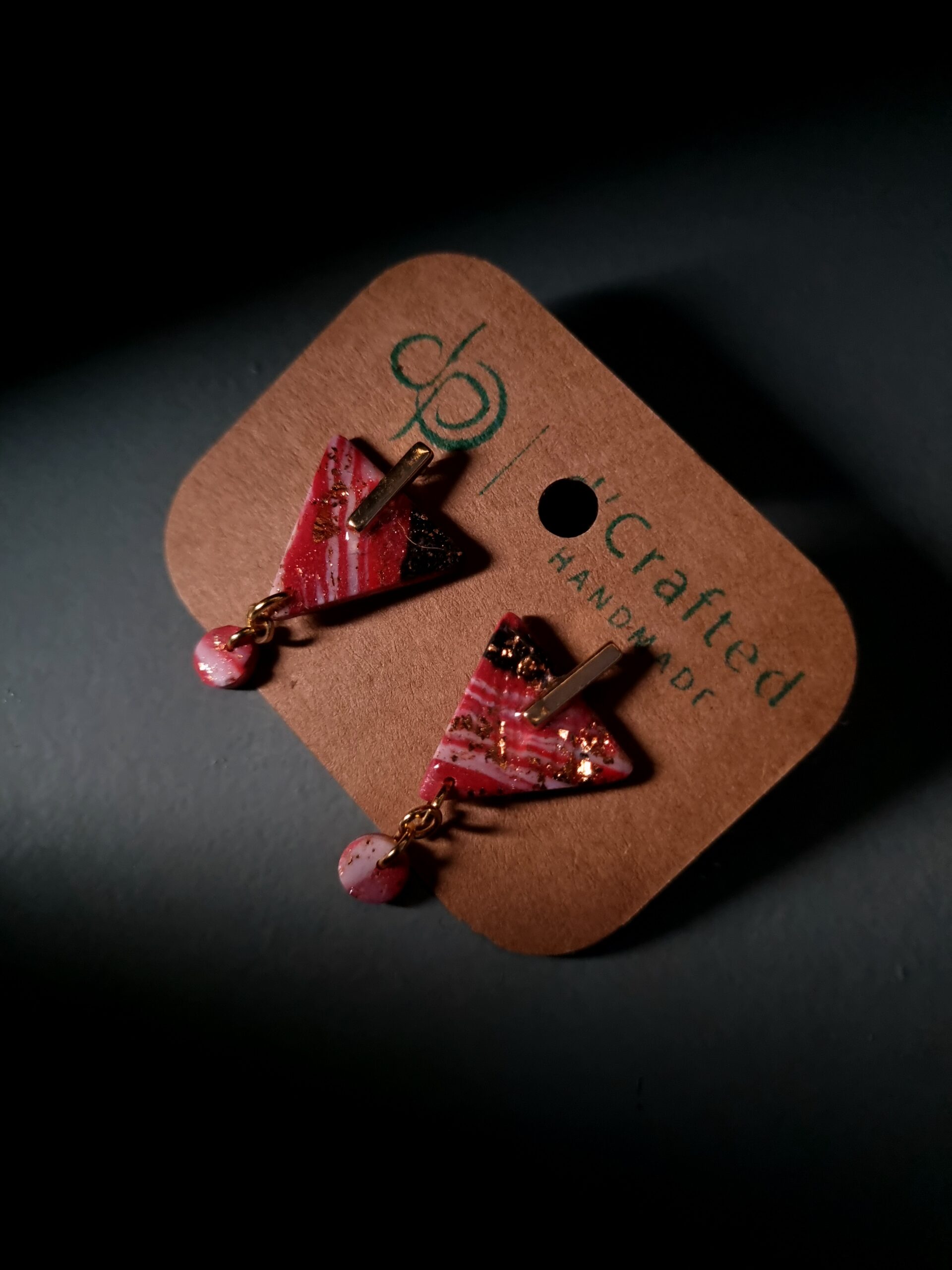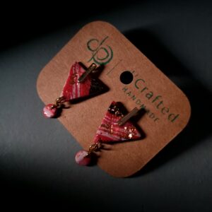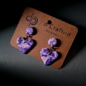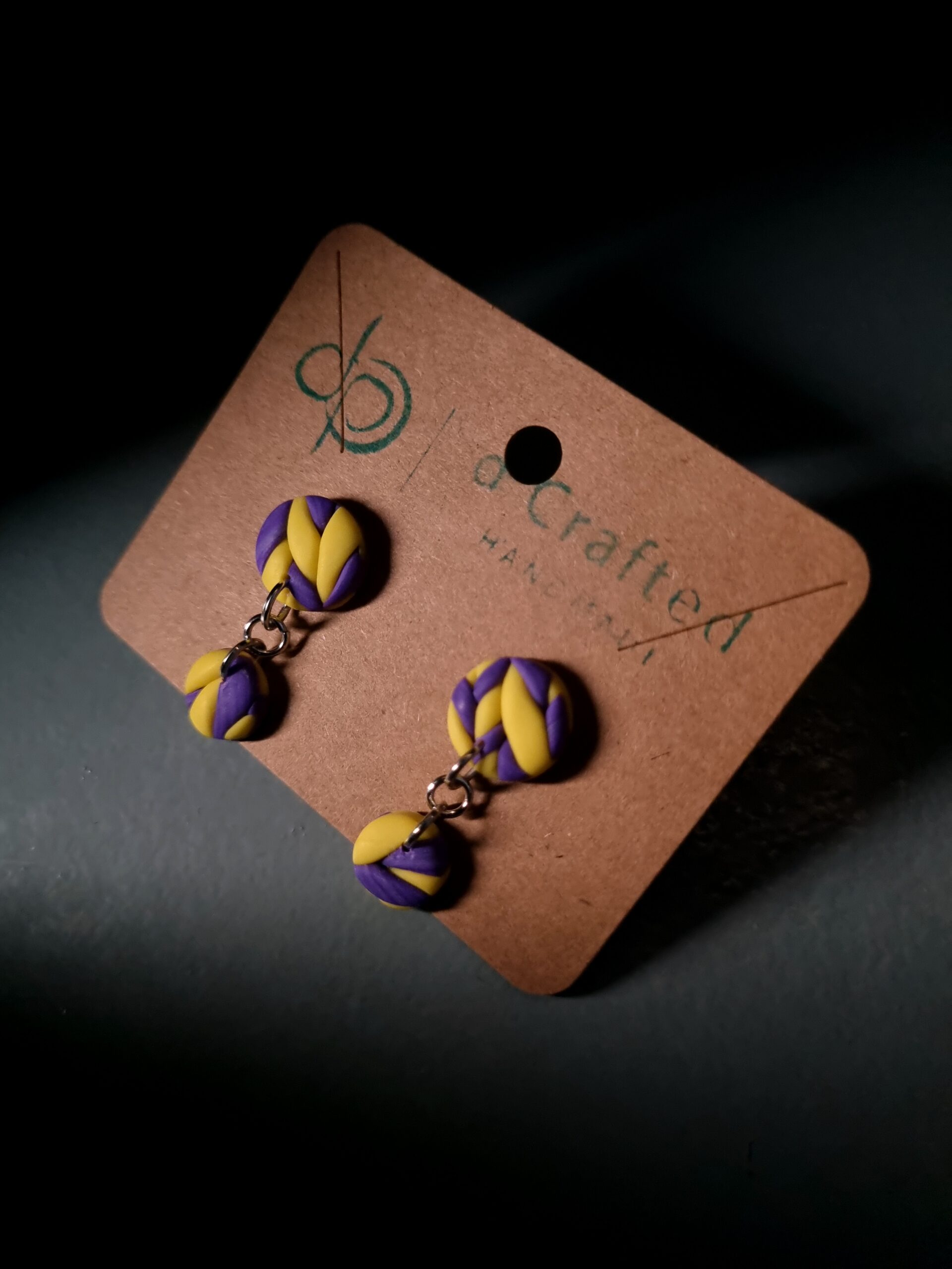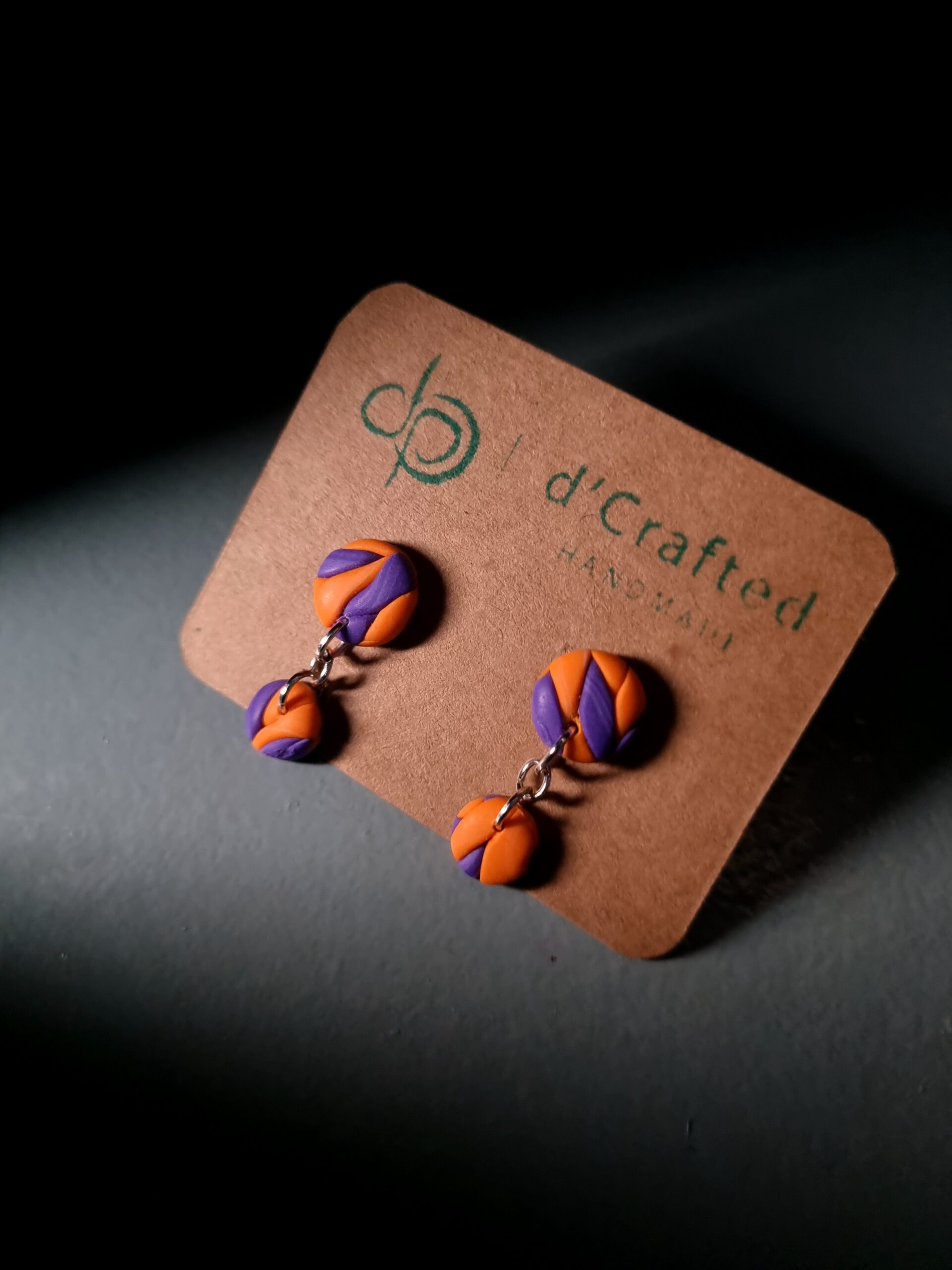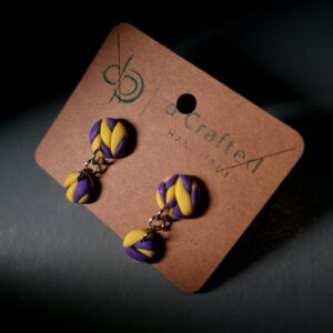 These mini two-piece dangle earrings are handmade from polymer clay and finished with sterling silver stud posts—lightweight, comfy, and easy to wear all day.