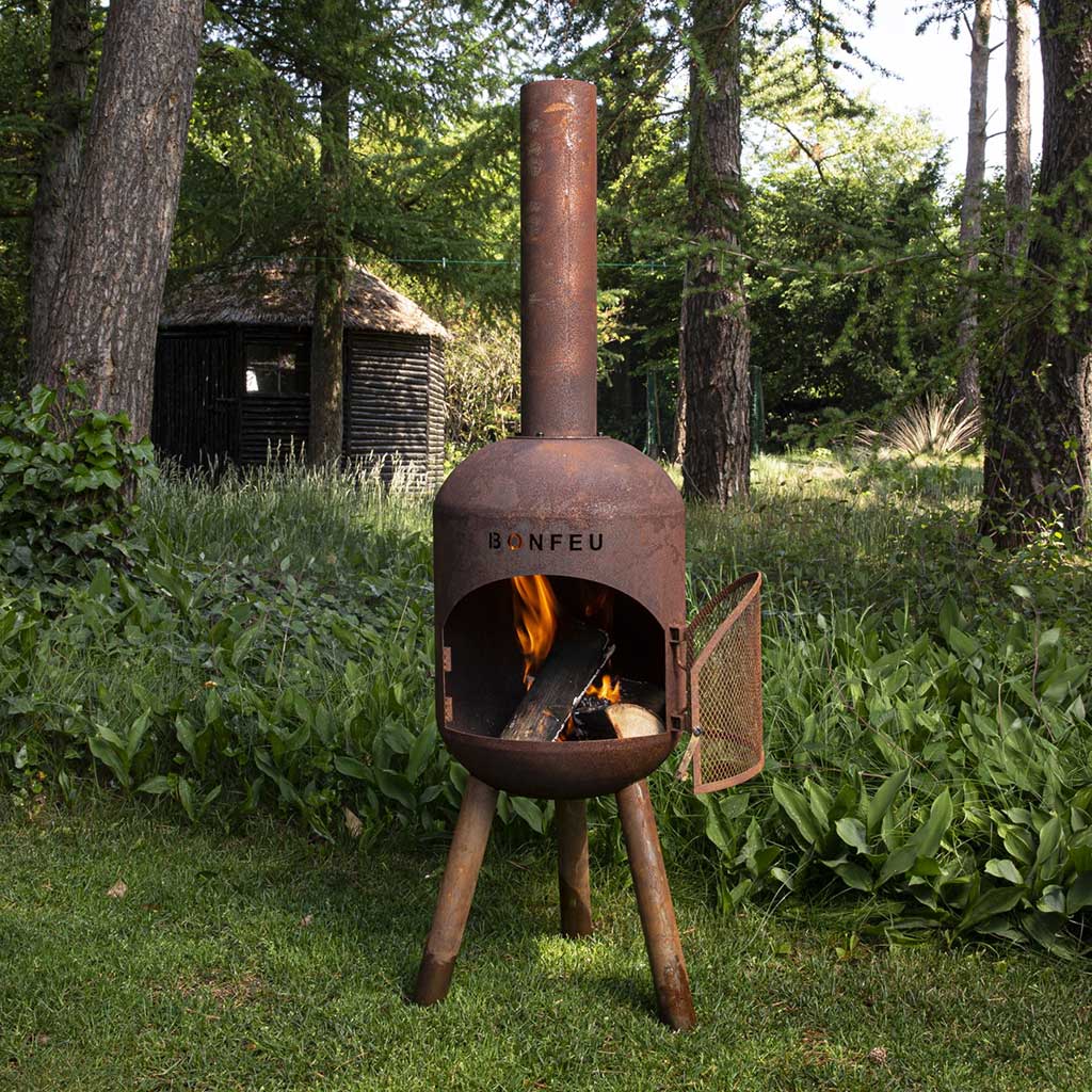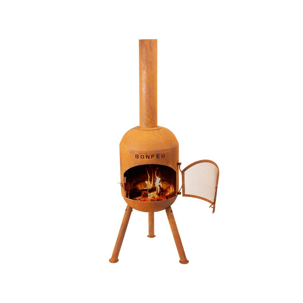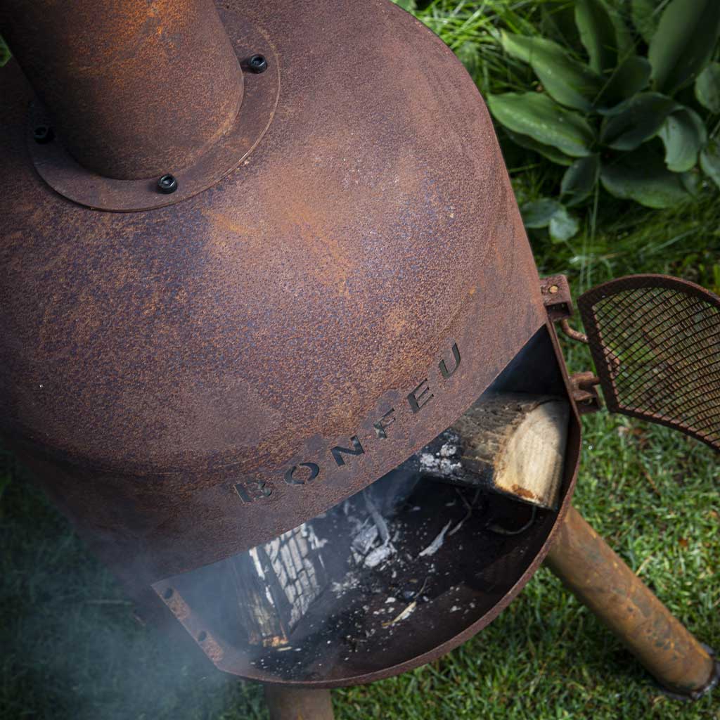 - Compact corten steel garden fireplace with chimney – 126cm tall