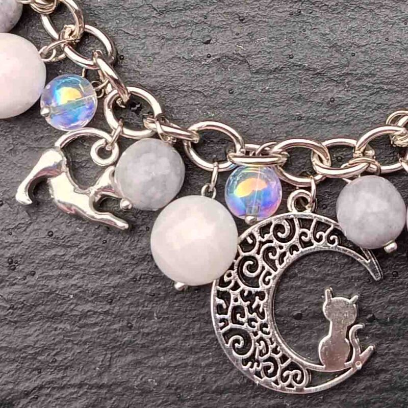 Alongside gemstone earrings, the collection also includes a selection of charm bracelets, including signature cat charm bracelet designs. These pieces combine playful detail with meaningful symbolism, offering a distinctive gift option for animal lovers and those looking for something a little different in handmade jewellery.